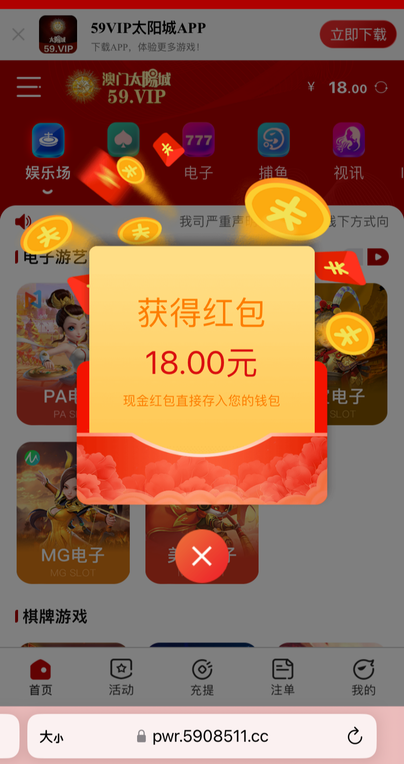 注册不用绑卡,等四五天登陆自动弹18红包,不限制游戏,一百提 今天又领到了,新人撸