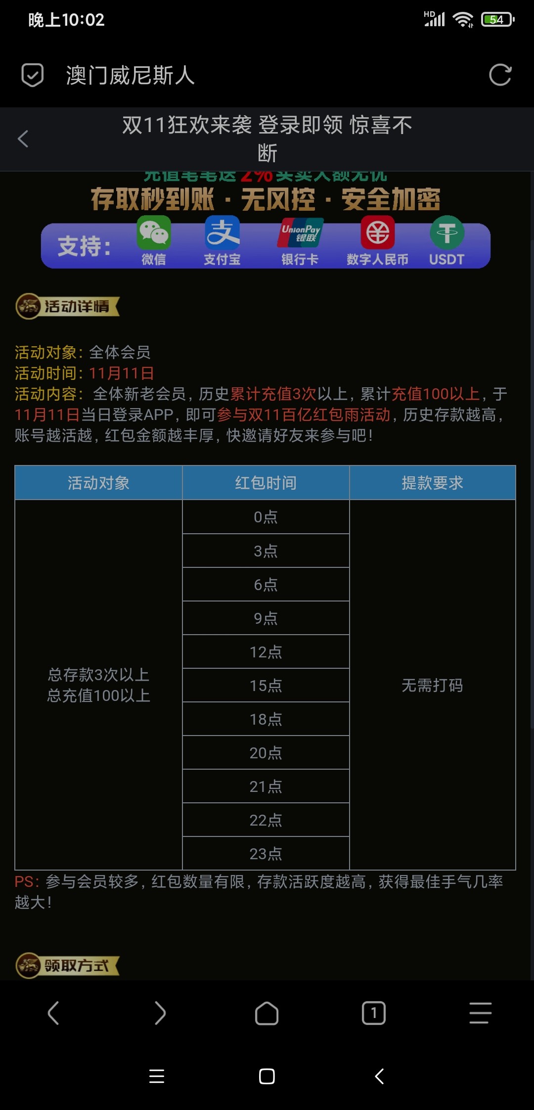 【威尼斯712】双11抢红包