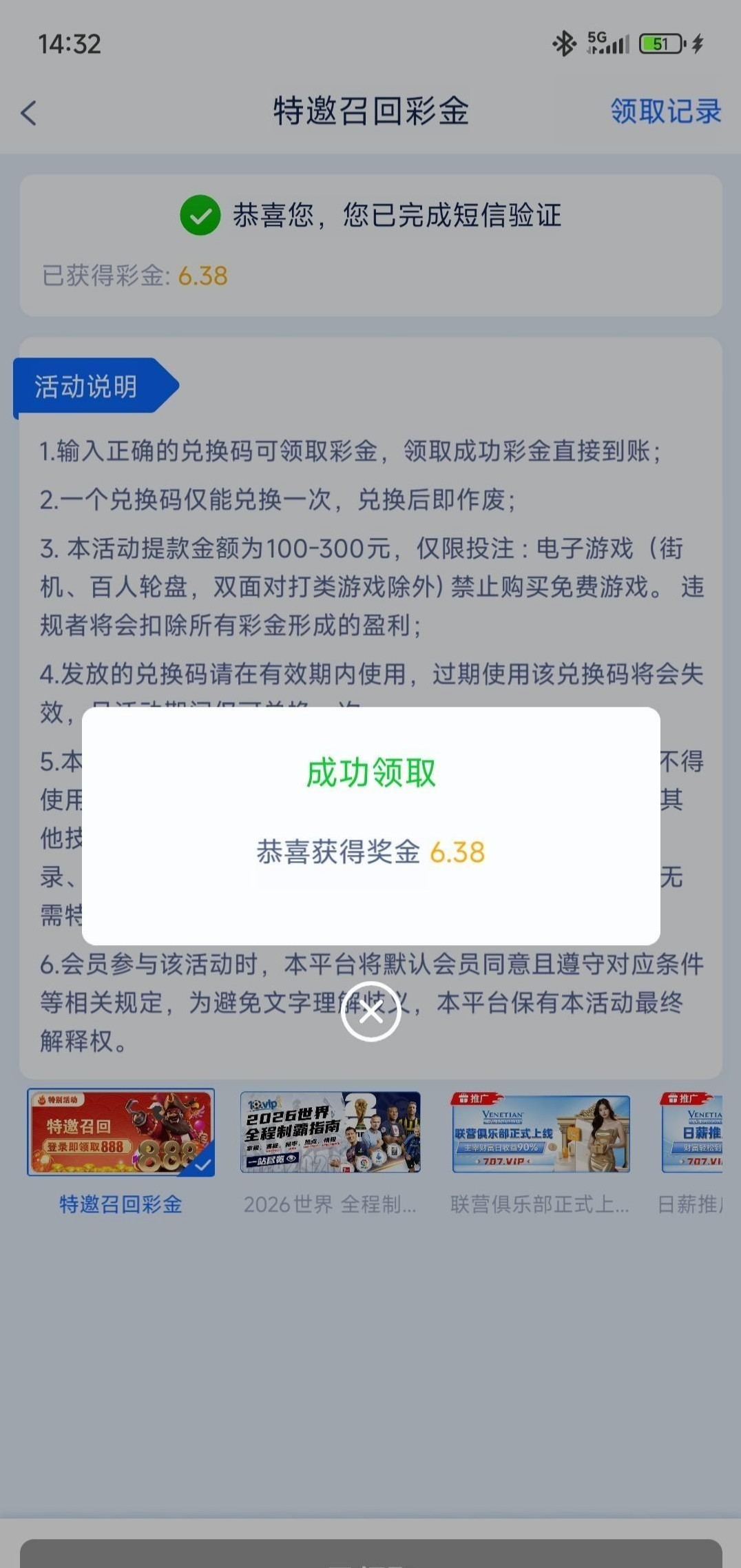 【威尼斯人—特邀召回彩金】