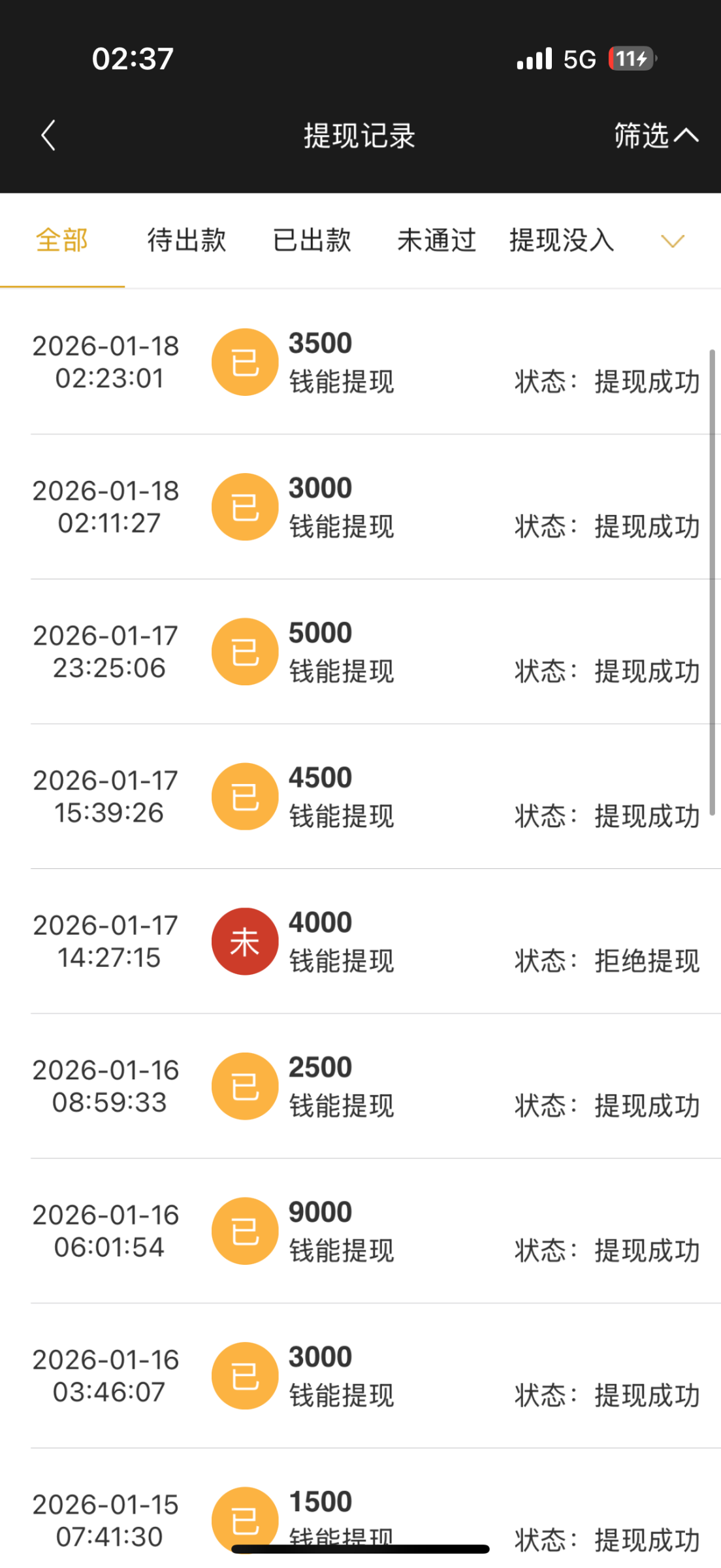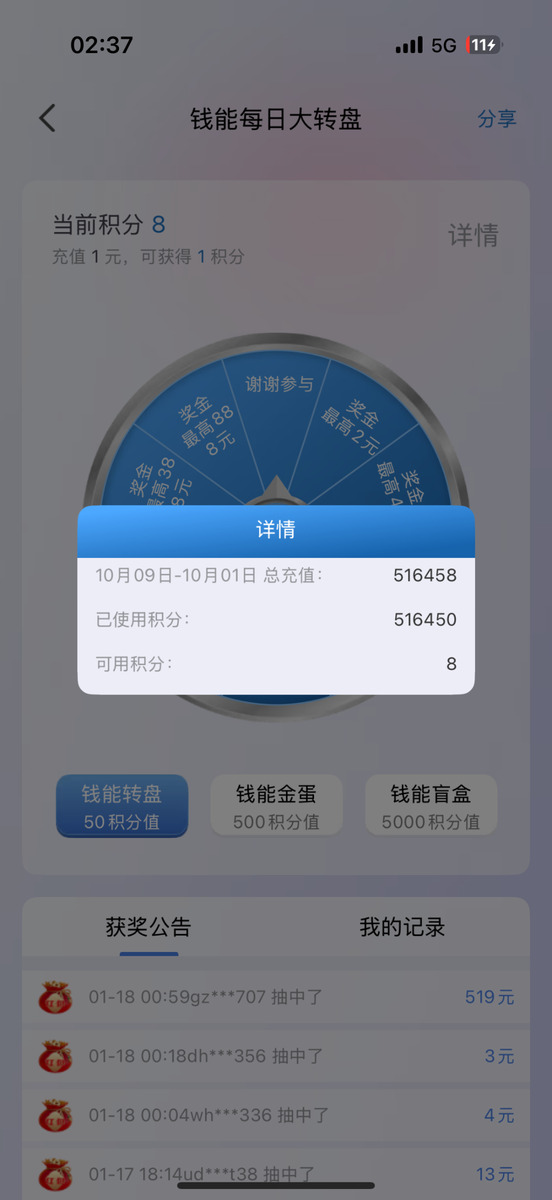 去年十月到现在充50个,钱能积分看到的