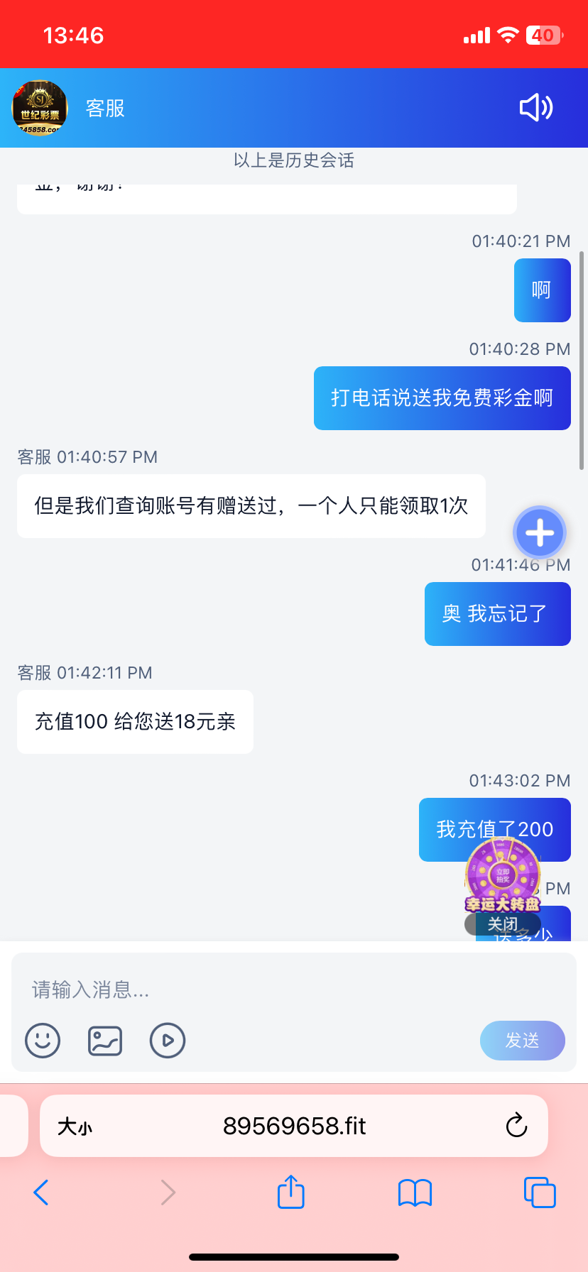 世纪彩票 送回访彩金 没充值过