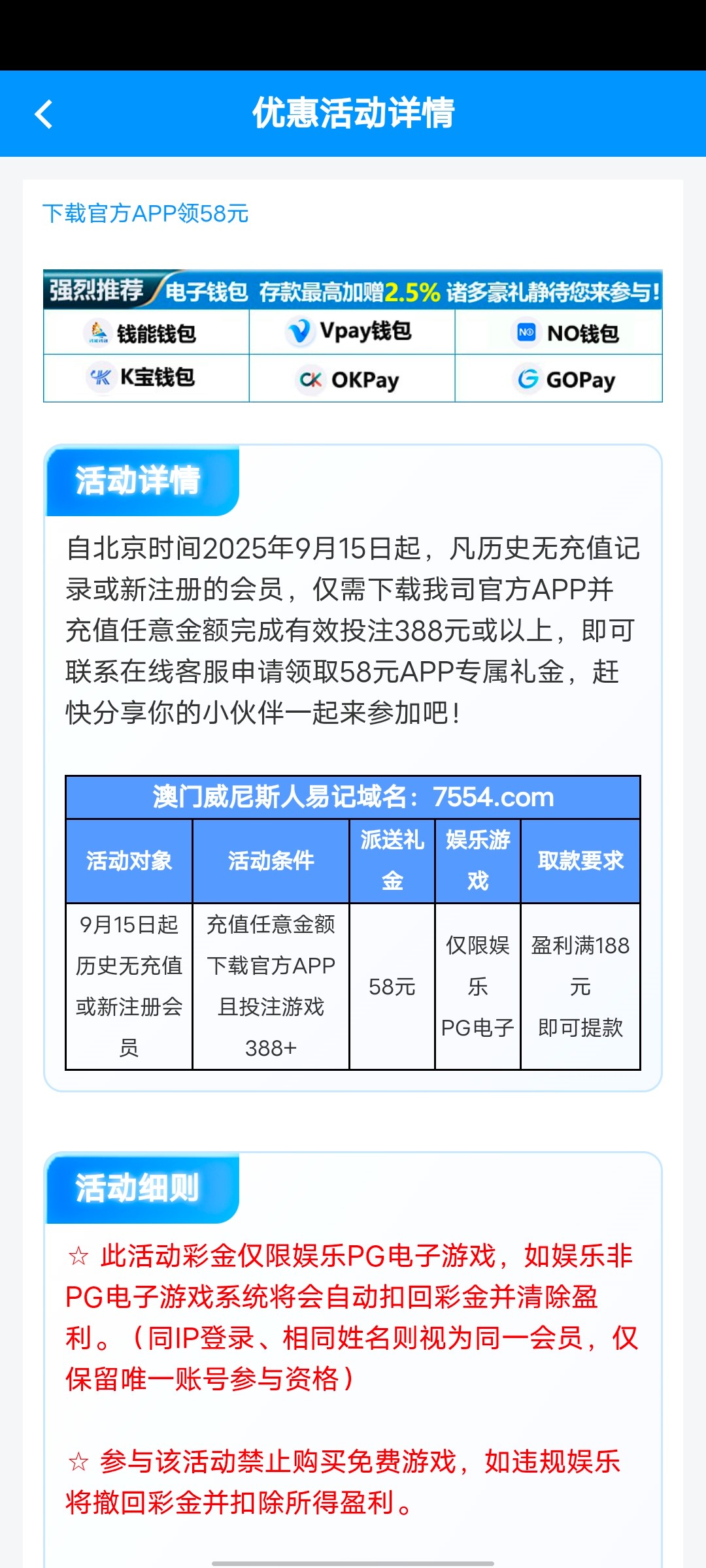 3、本站资源均来自互联网-需自行判断与负责。每日更新(论坛内容仅用于 薅羊毛 白嫖 论坛严禁充值娱乐 严禁任何形式推广 发现一律提交当地公安 )感谢您的支持!