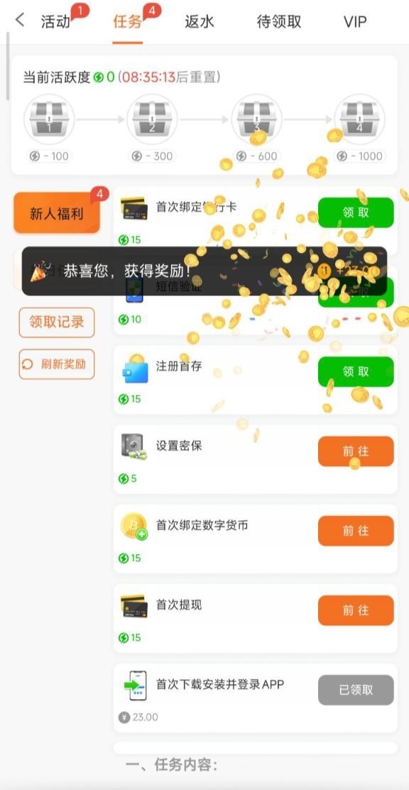 老用户网页登录下面有个任务里面有个下载App领取23彩金,下载领取即可,具体自测,网址:03.com