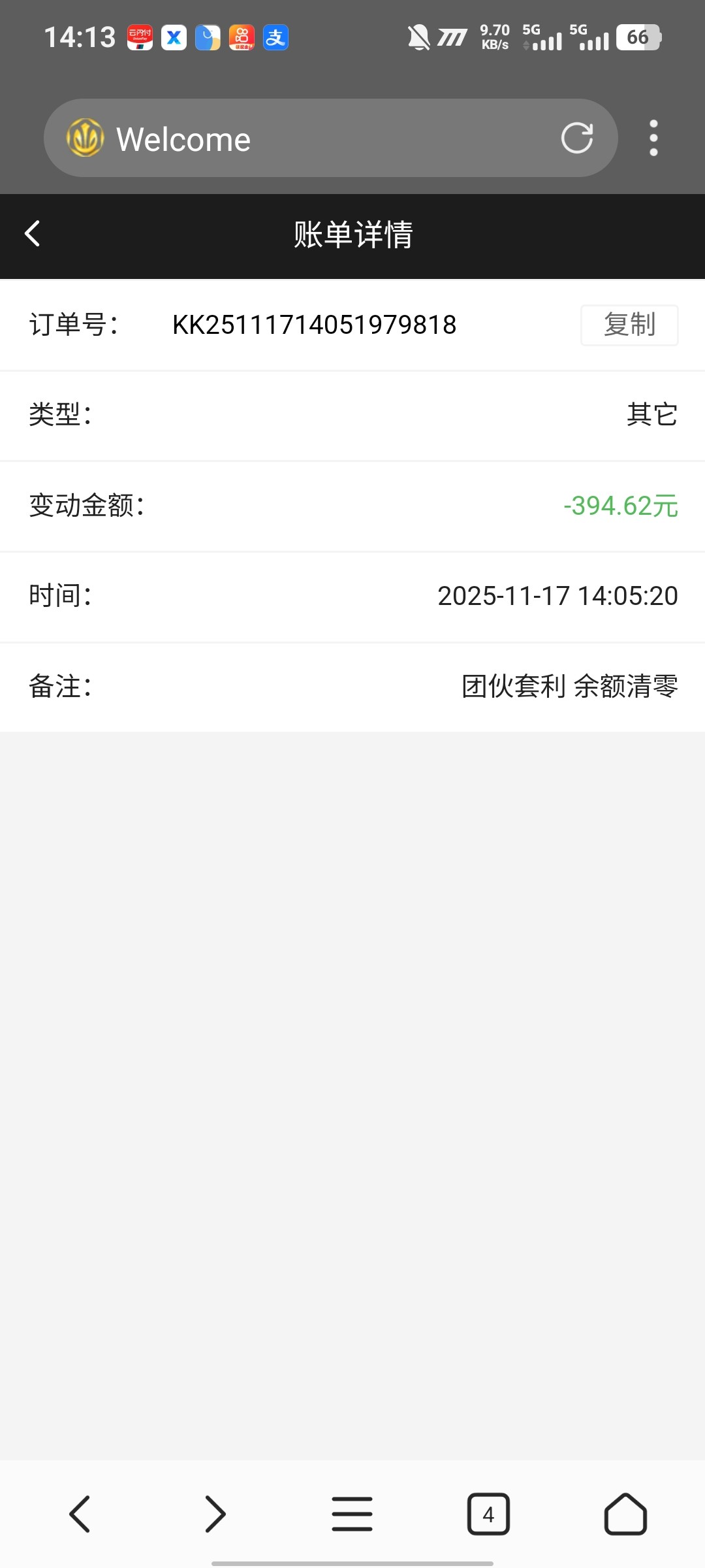 短信彩金26打到390不给提 我还充值了一笔 这种垃圾台玩个JB