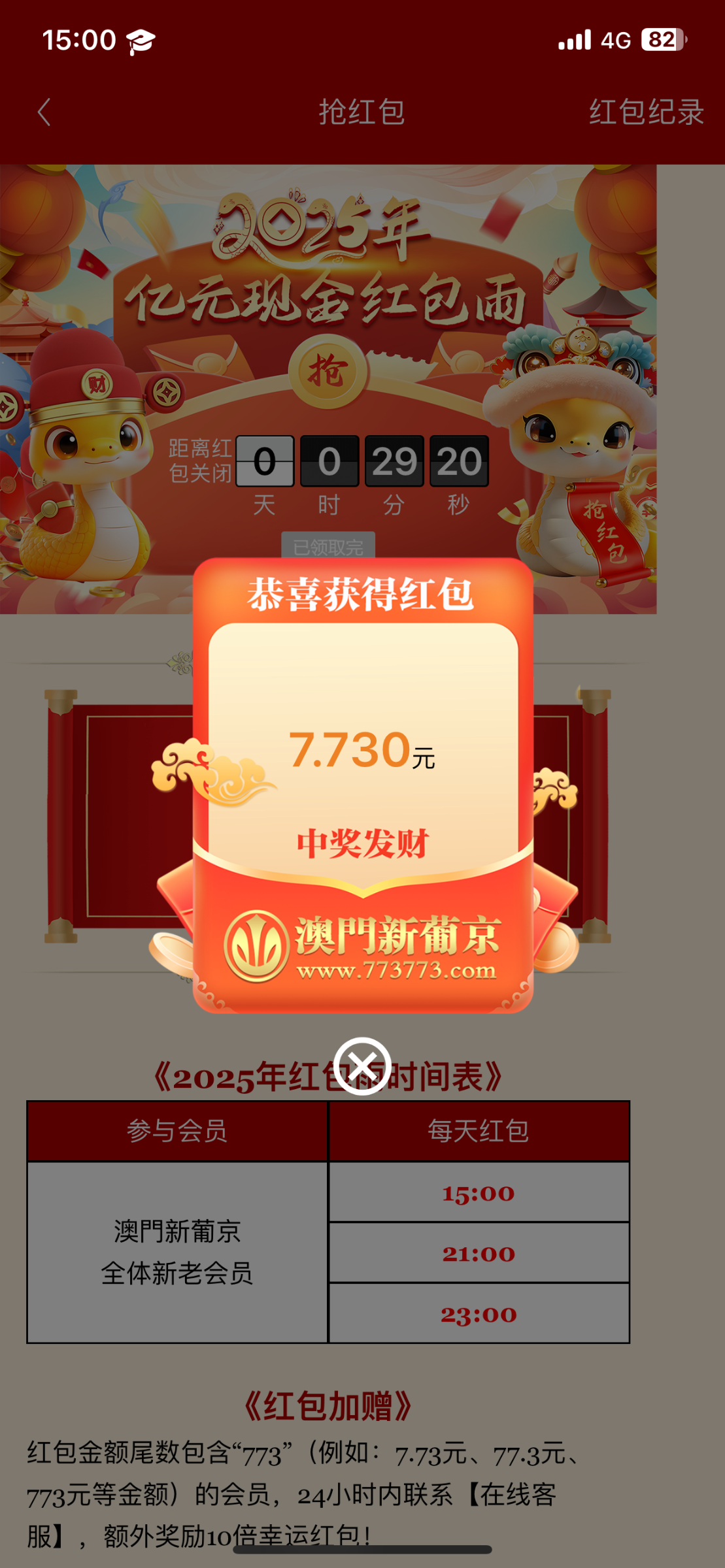 抢了一年多 终于抢到一次包含773的红包了