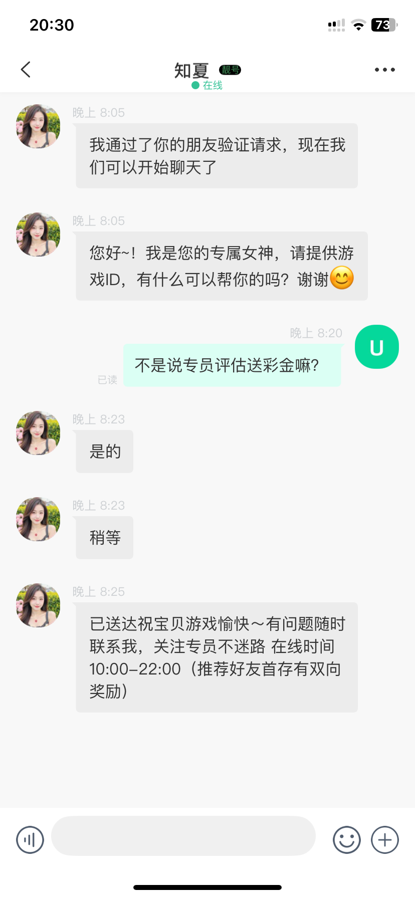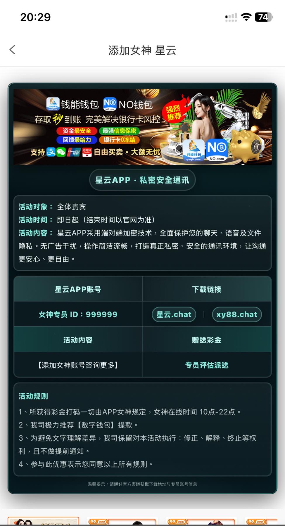 下载聊天软件添加专员客服 然后申请女神彩金