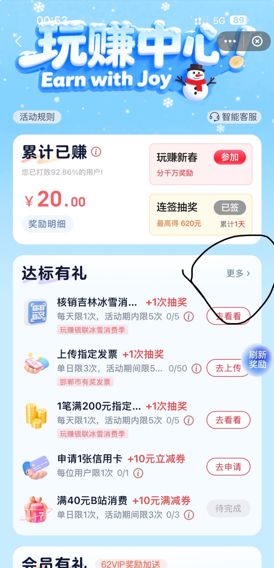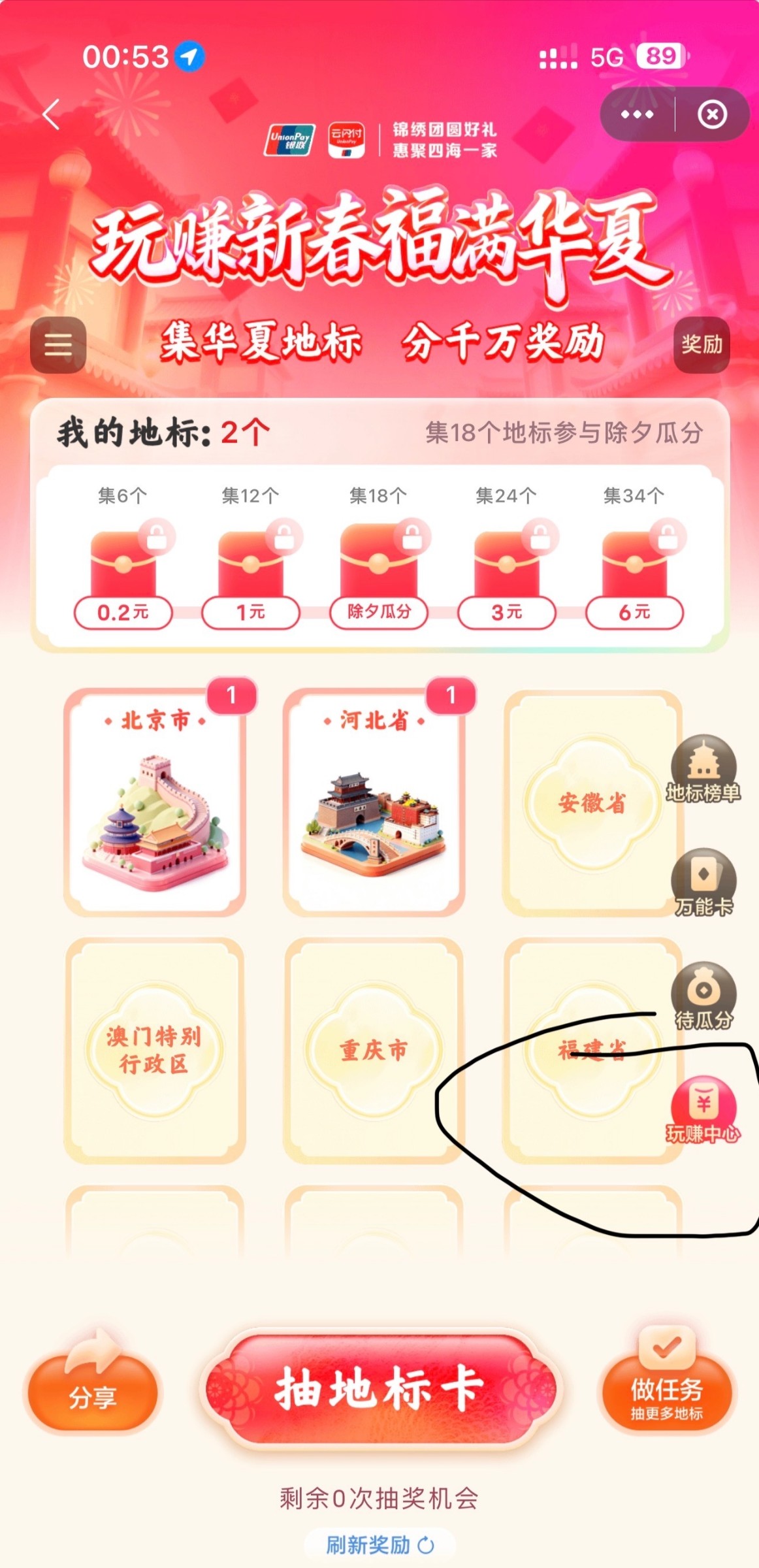 首先打开云闪付首页 点搜索 玩赚中心 然后看图操作即可