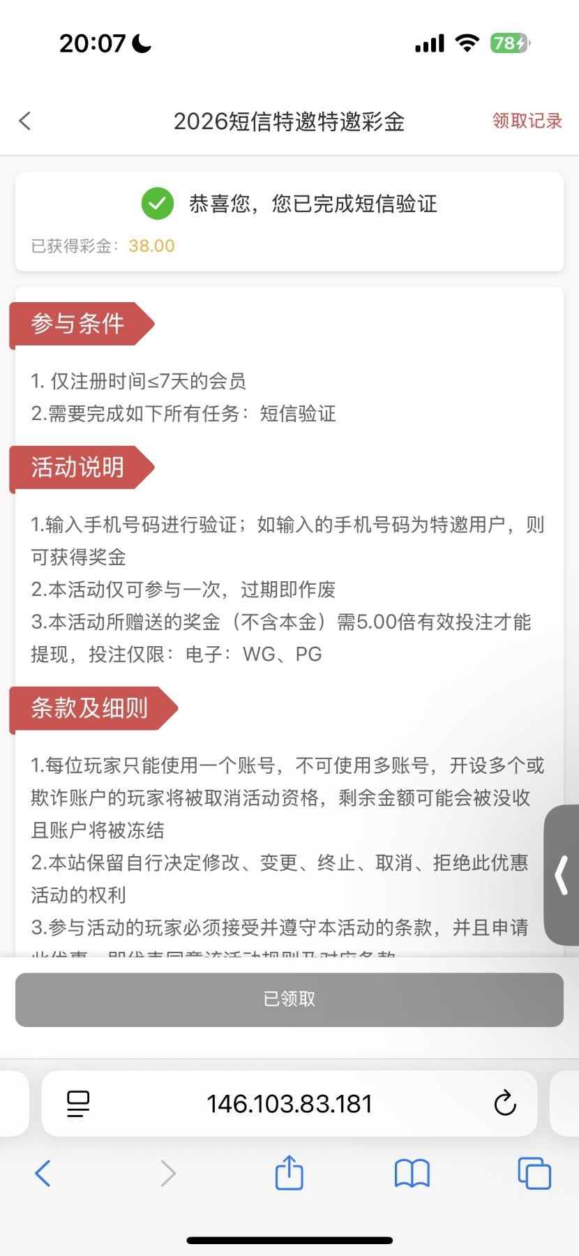新人注册随缘绑定优惠里面手机号,自助验证特邀领38,只能电子出款自测,禁止充值白嫖即可