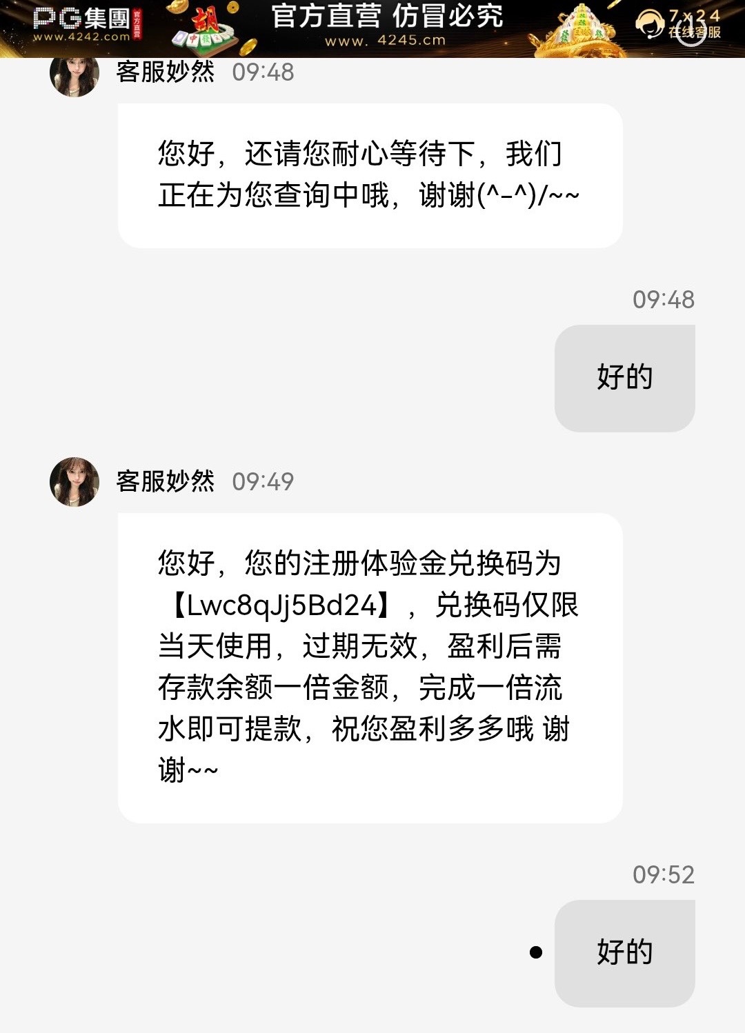 注册联系客服申请兑换码