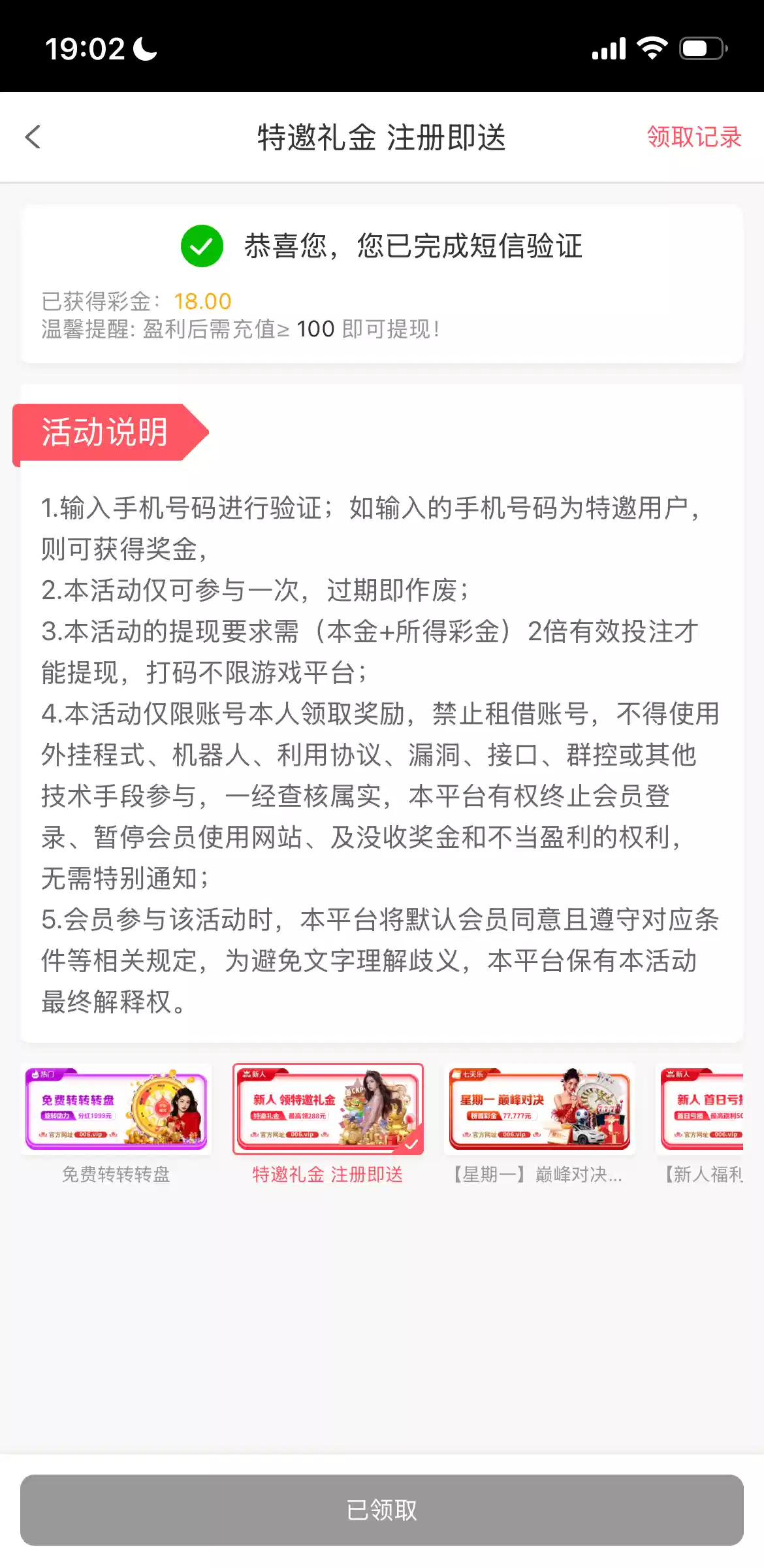 这个台 可以充值 免费彩金提过500