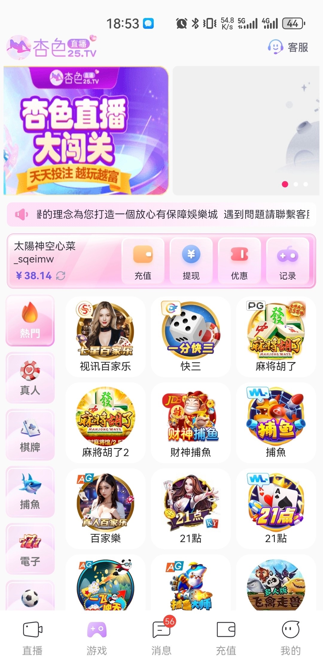 打电话来说登录送彩金,没接到的可以去碰一下,登录没到的话可以找下客服碰一下,有就有,没有就没有,网址25.tv