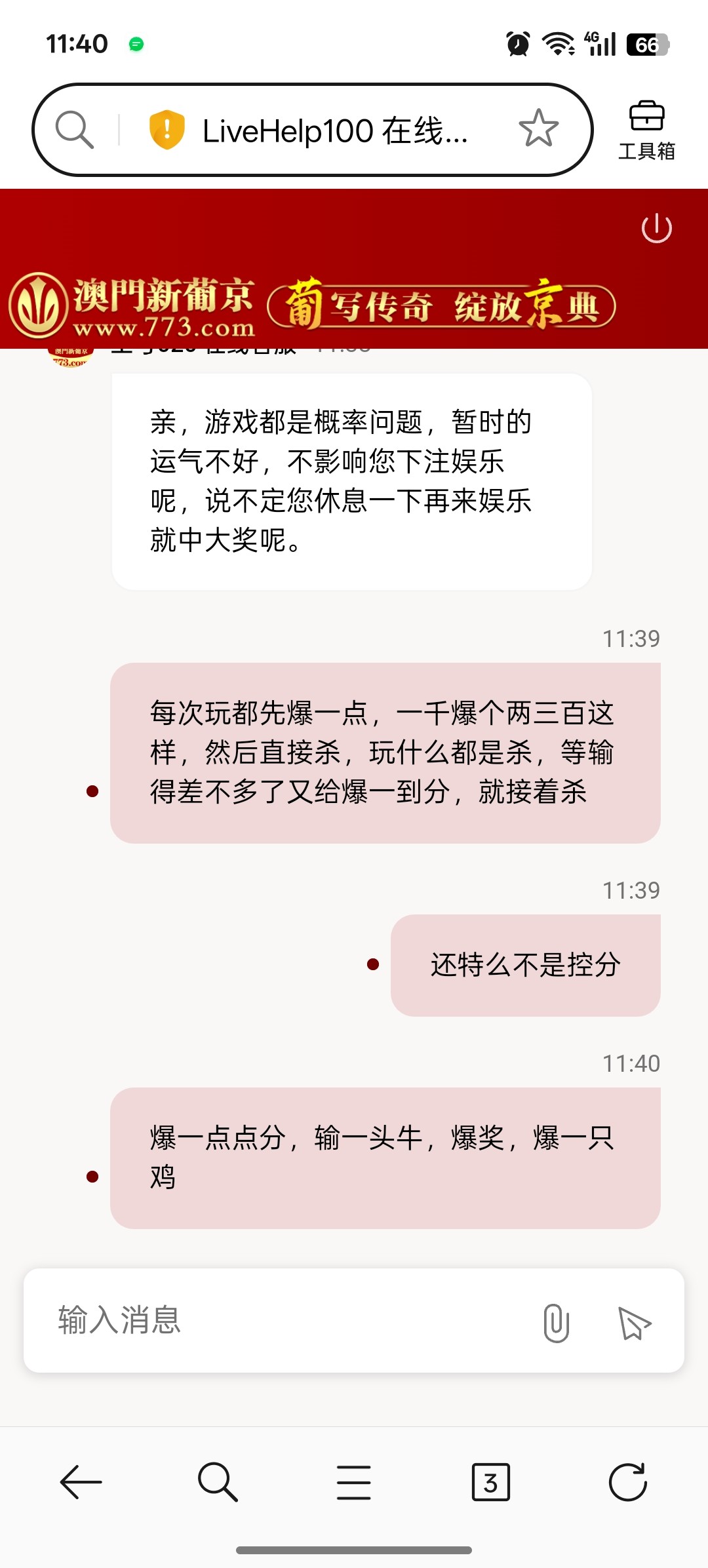 赌了好多年了,玩久一点的平台全都是负盈利,狗庄设定好的,就拿773来说,输了七八千过段时间,他可能会给你爆两三千,这就是所谓大水,没输到一定数额是没有水的,都是后台控分,戒了老哥们,提现动不动挨冻结,挨反诈,动不动赌通宵,赌得人不人鬼不鬼,累了,戒了